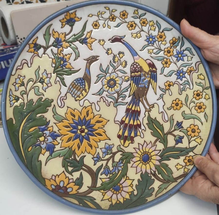 Nunca me había fijado en ese plato, después de más de cuarenta y cinco años pasando por esa casa… pero algo me recordó a un baldosín que yo mismo pinté en un taller en la tienda museo de la familia Balian en Jerusalén