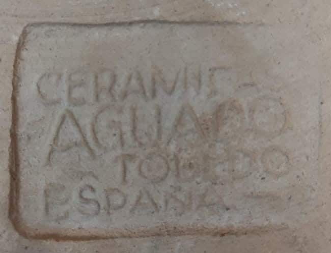 El plato fue comprado mis suegros, en los años 70. Por detrás está la marca de un taller de Toledo: «Cerámica Aguado».