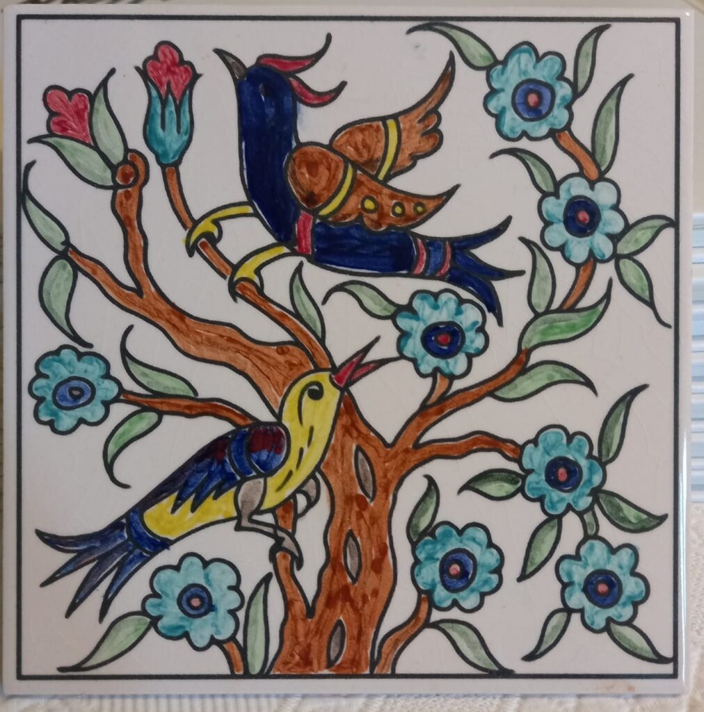 El estilo del plato nos recuerda a un arte más oriental (Armenia es parte del llamado «Oriente Próximo»). Esto es porque los armenios aprendieron la cerámica vidriada de los persas, de cuyo imperio formaron parte durante un tiempo de su tremenda historia. El significado de las aves se relaciona con la inmortalidad, parece que ha funcionado con un pueblo que tiene más de 3.000 años de historia.
