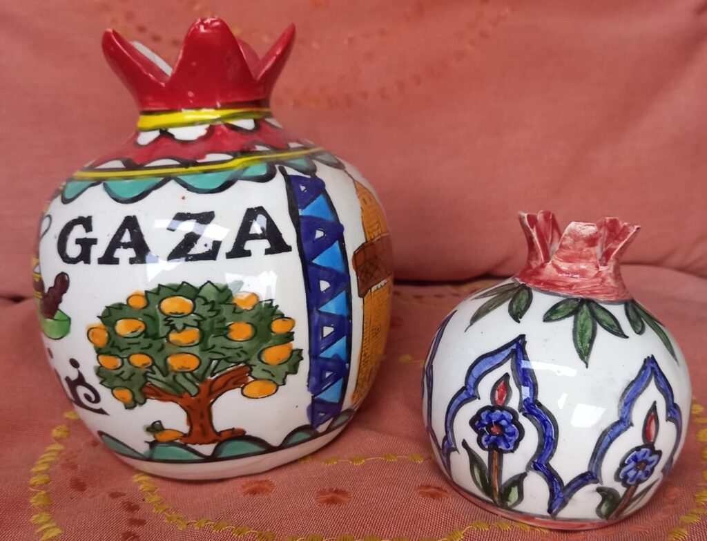 Para rematar esta historia tan curiosa, traigo aquí otras dos piezas: la de la derecha (ya se nota) también la hice en aquel taller de la familia Balian, precisamente porque me recordaba a la otra, que me regalaron en un viaje a Gaza. Las granadas eran un motivo clásico de la cerámica Armenia, ahora hay otro tipo de granadas en Gaza…
